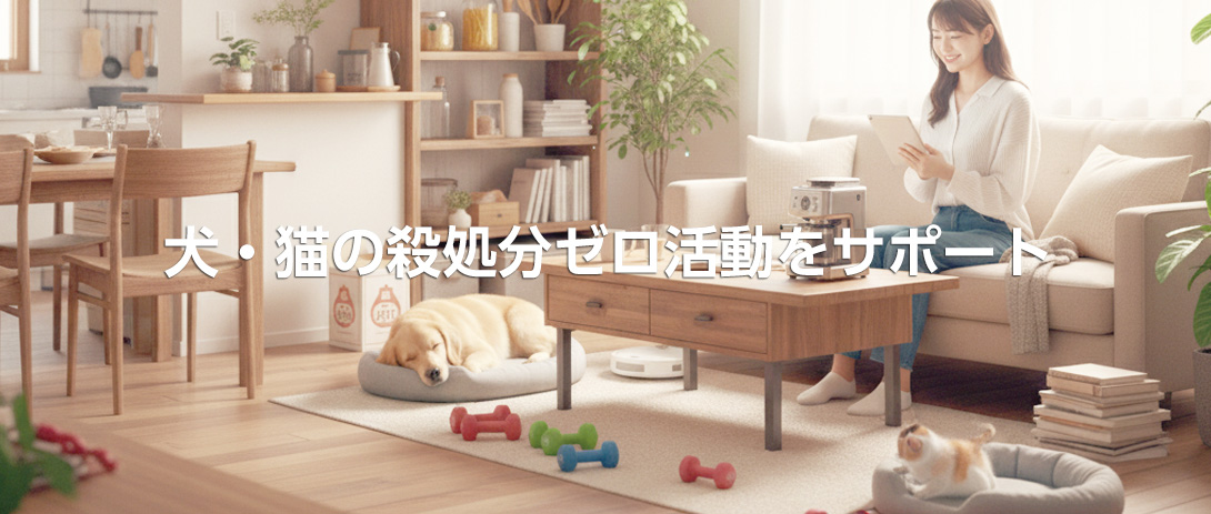 犬・猫の殺処分ゼロ活動をサポートするために自社企画商品を開発し、弊社と代理店で販売しています。また、賛同いただける協賛・加盟店を募り、参加店の様々な寄付付き商品も弊社がこのオンラインショップで販売し、売り上げの一部を保護団体に寄付しています。
